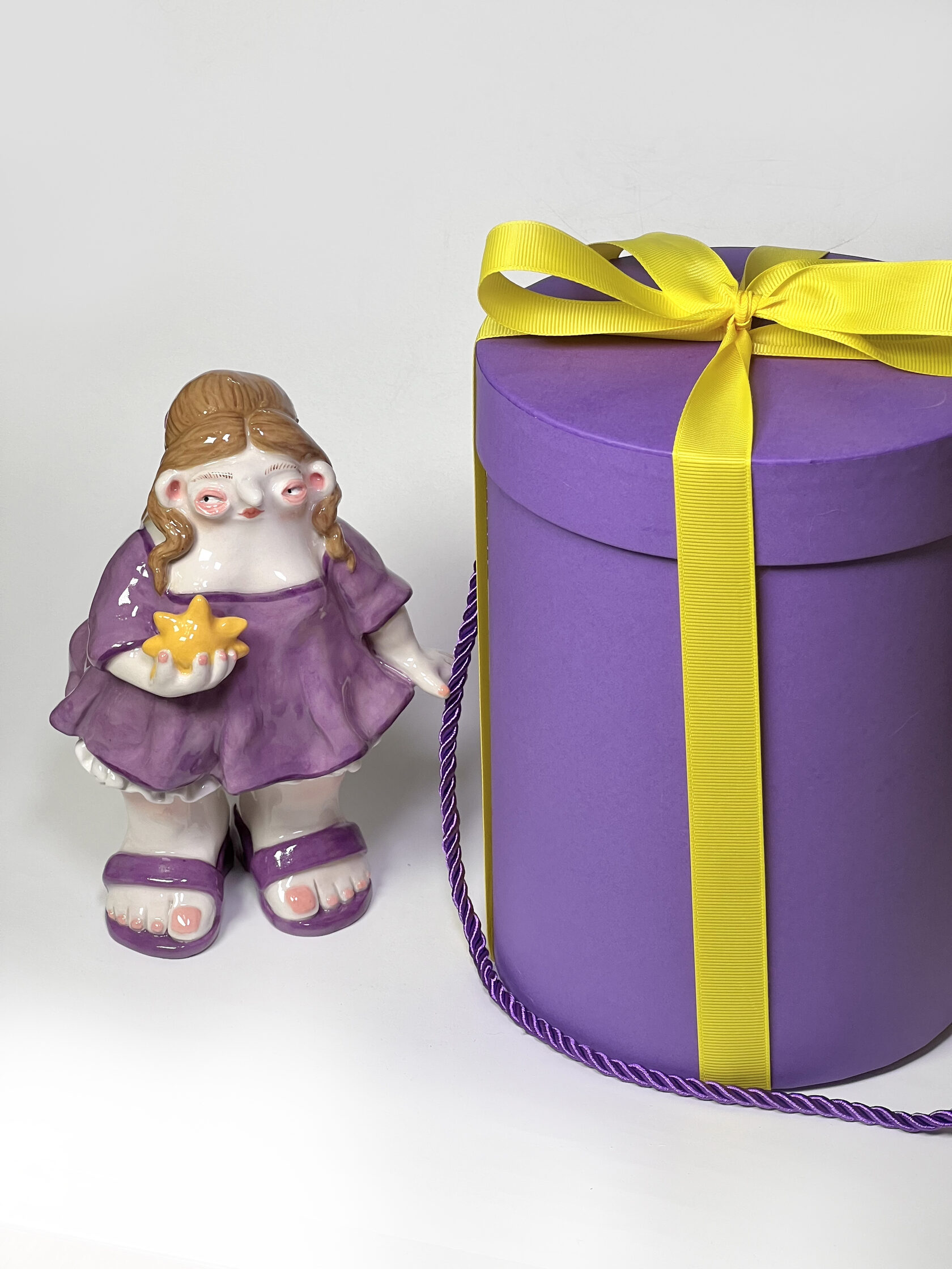 English translation: Wish Fulfillment is a sculpture from the "Naked" series. It's not simple — it was created specifically to fulfill desires. There is a hand behind the Naked Man's back, into which you put your wish, rolled up in a small scroll. Then all that remains is to wait: the magic bug on his shoulder will quietly whisper it to the Naked Man, and he will carefully send the dream into the world when it is ready to come true. Height (H): 25 cm Width (W): 14 cm