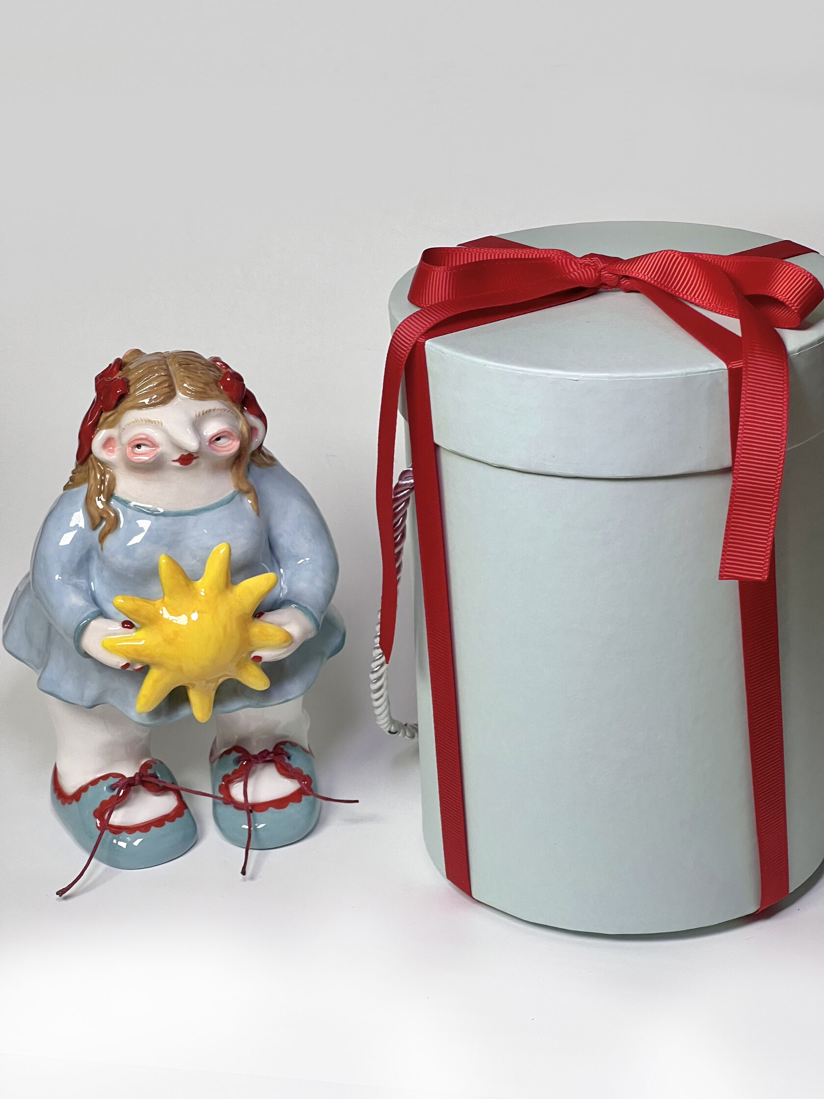 Исполнитель желаний — скульптура из серии попастиков. Она не простая — создана специально для того, чтобы исполнять желания. За спиной у Голыша отведена рука, в которую вы вкладываете своё желание, свернутое в маленький свиток. Дальше остаётся лишь ждать: волшебный жучок на плече будет тихо шептать его Голышу, а он бережно отправит мечту в мир, когда она будет готова сбыться.